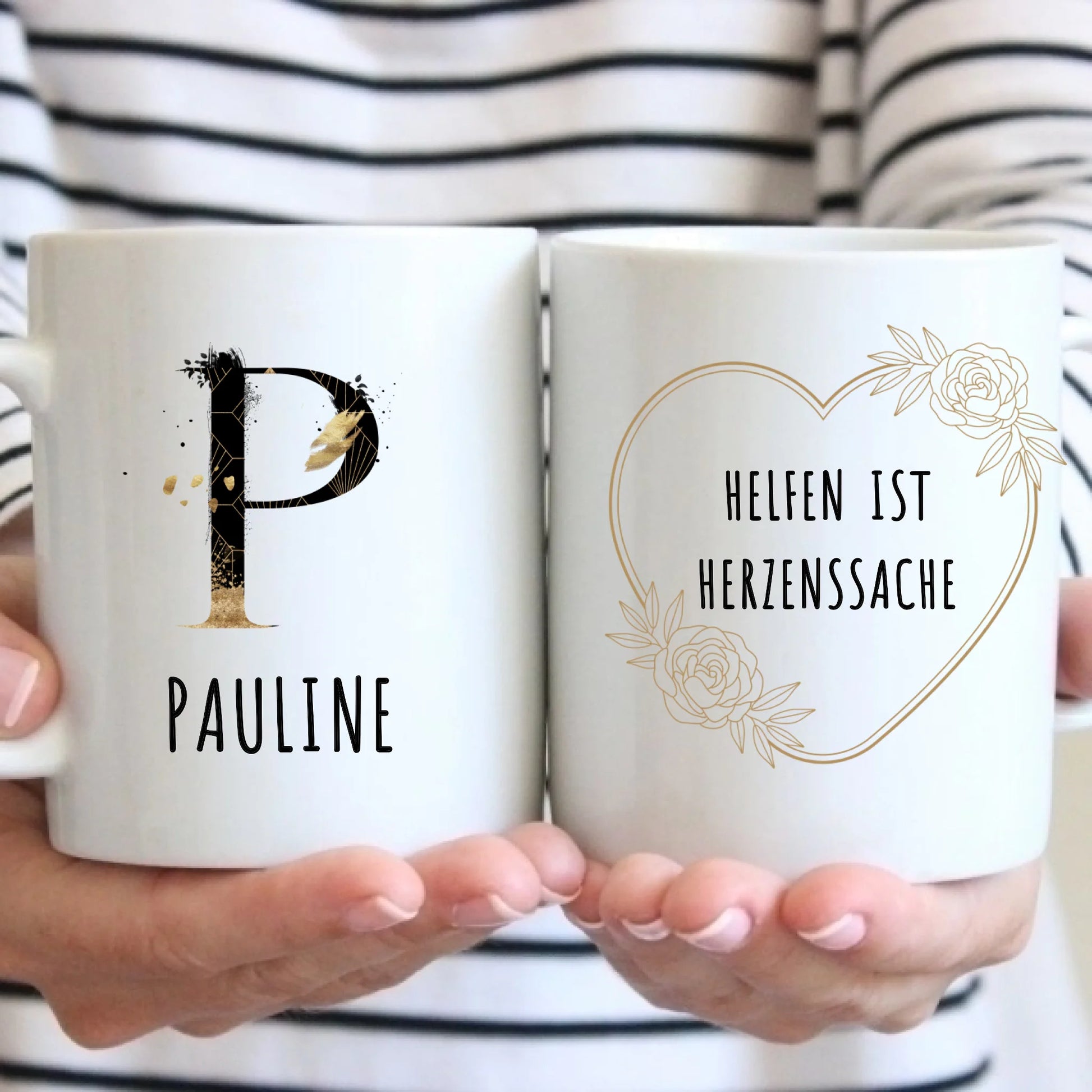Das Design im goldenen 20er-Jahre-Look verleiht dem Pflegeberuf den Glanz, den er verdient. Personalisiere die Tasse mit dem Namen, dem Anfangsbuchstaben und der Berufsbezeichnung (z.B. "Krankenschwester mit Herz" oder "Hebamme aus Leidenschaft"). Ein Geschenk, das sagt: Du machst deinen Job nicht nur gut, du machst ihn mit Klasse.