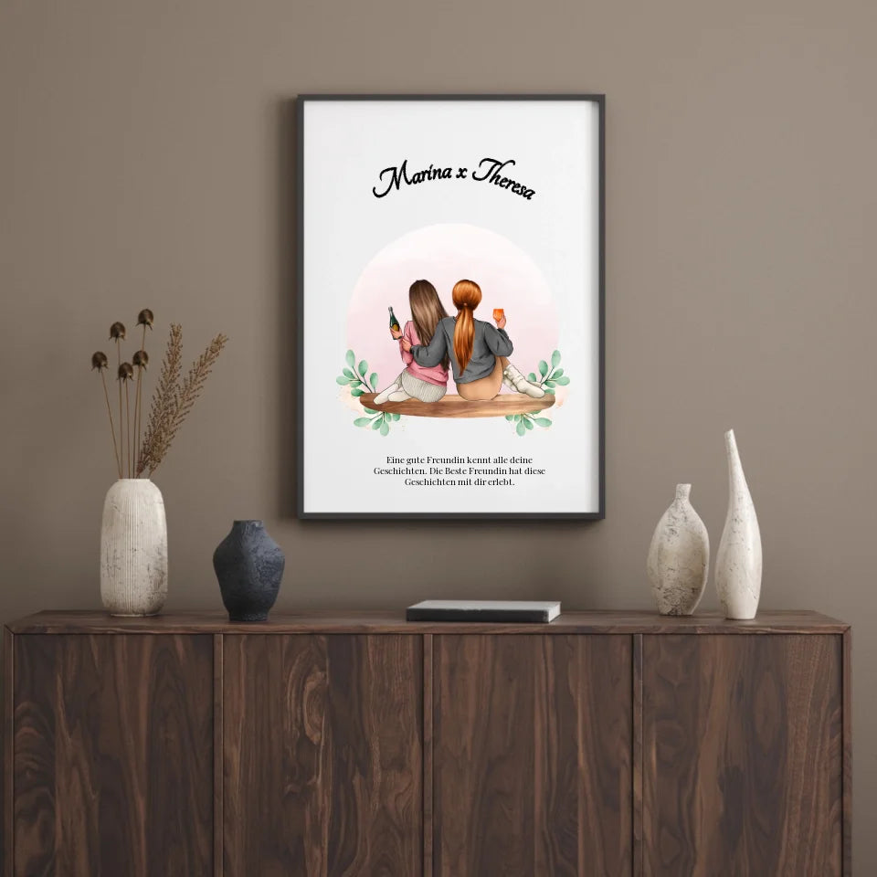 Personalisiertes Poster 'Beste Freundinnen sitzend' - Ein Symbol ewiger Freundschaft